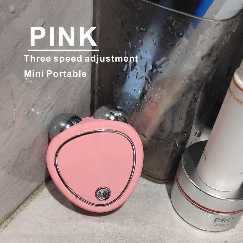 Descripción del producto: Masajeador de doble rodillo para rostro delgado ,rodillo facial rosa en forma de V, masajeador de belleza con microcorriente, eliminador facial, rodillo 3D, instrumento de estiramiento facial con estiramiento de la piel y reafirmante para belleza facial.